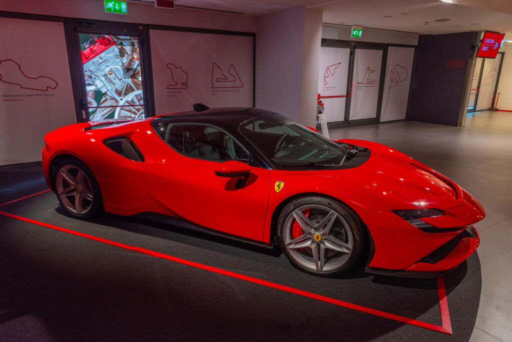 SF90ストラダーレは、フェラーリ初のPHEV市販車として登場しました。ハイブリットカーとしては「ラ フェラーリ」が先に販売されていたものの、限定車であったため通年販売としてはフェラーリ初のモデルです。エンジンはV型8気筒の4.0Lツインターボ、さらに3つの電気モーターが搭載されました。ガソリンエンジンだけでも最高出力は780psあり、さらにモーターの220psが上乗せされます。PHEV車ながらしっかりとスーパーカーの動力性能を持っているのも、フェラーリならではといえるでしょう。テールランプはフェラーリらしい4灯ではありますが、丸型ではなく角型に変更されています。また、インテリアもフェラーリの市販車としては初のフルデジタルコックピットを採用するなど、全てにおいて新しい取り組みがされた1台です。