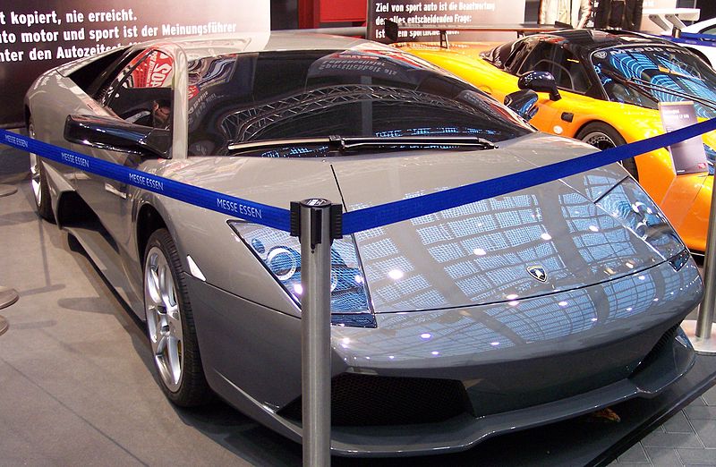 ディアブロの後継モデルとして2001年から2010年にかけて製造販売された、ランボルギーニのフラッグシップ・スポーツカーがムルシエラゴ。エキサイティングな外観デザインで、ボディパネルはカーボンファイバー製、ルーフとドアのパネルにのみスチールが使われています。リアのミッドシップにレイアウトされる6.2LのV12エンジンは、ディアブロの最終生産型である「6.0」を延長したもので基本は同じ、そしてパワートレインの配置もカウンタックからディアブロを経て受け継いだものとなり、エンジンの前方にギアボックス、後方にディファレンシャル配置するランボルギーニに特有のレイアウトです。駆動方式はフルタイム4WDで、排気量は6.2Lとし、出力は580hp(約588PS)、トルク66.3kmとされています。